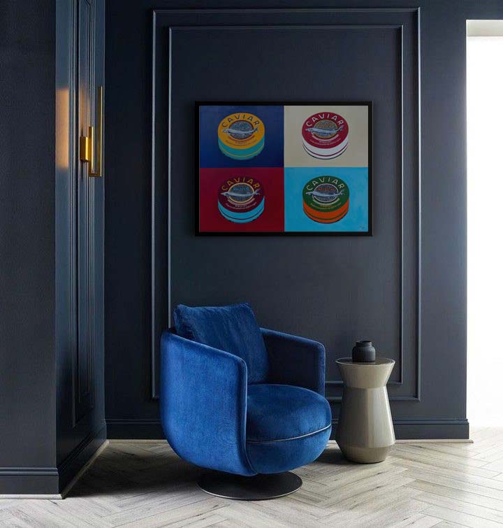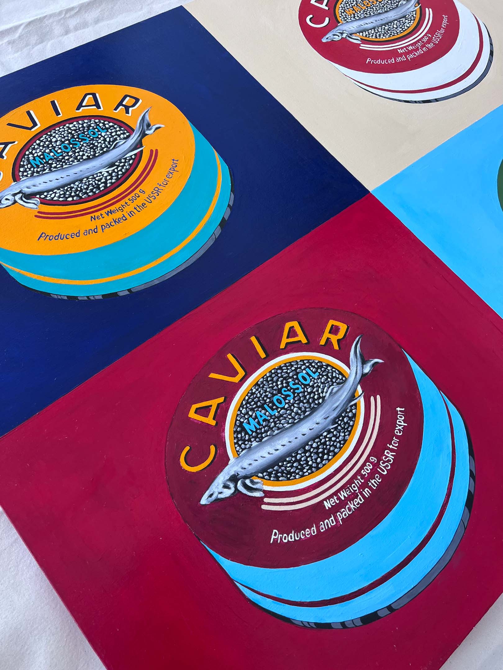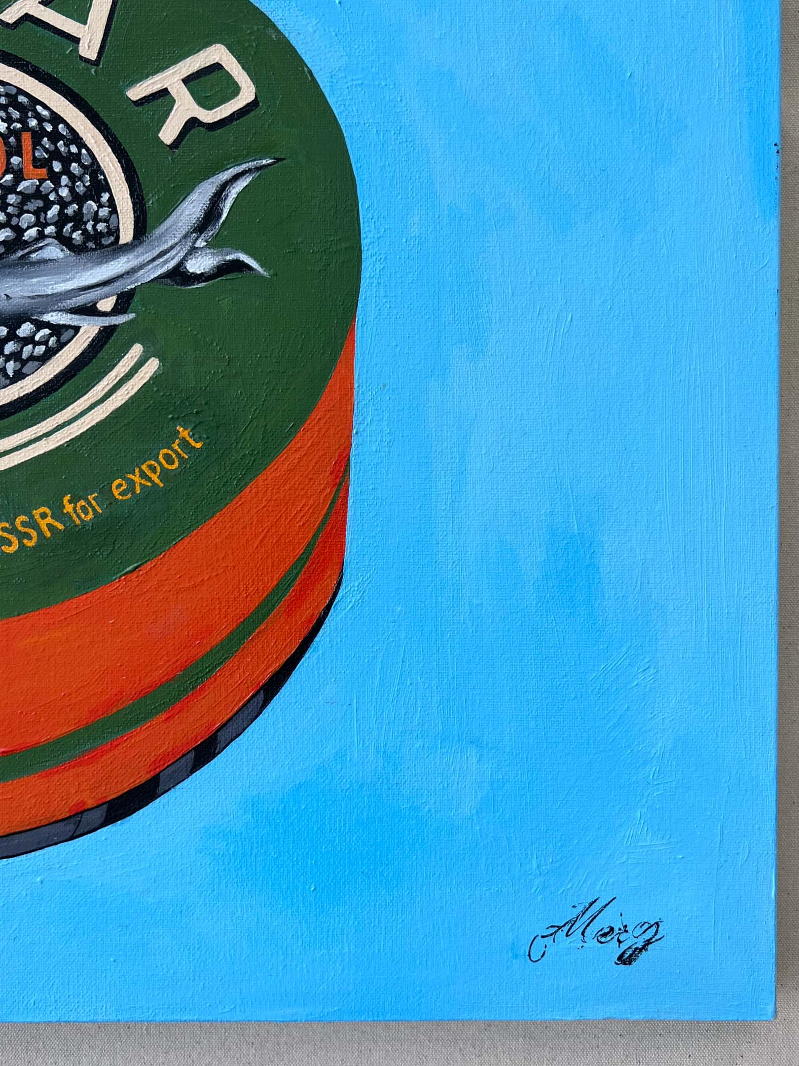 The series “Caviar” is a striking fusion of Soviet nostalgia and Western pop culture, bridging two iconic worlds: luxury caviar and Warhol’s mass-produced aesthetic. By reimagining Soviet caviar cans in the style of Andy Warhol’s Campbell’s soup series, the piece offers a thought-provoking commentary on consumerism, identity, and the art of branding.