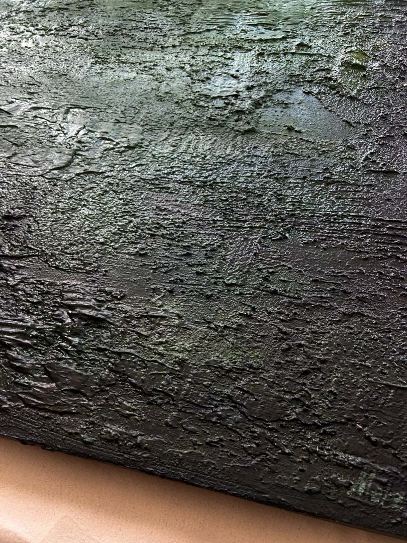 This soothing oil painting is a tranquil escape into a world of serene greens, designed to evoke a sense of peace and calm. The soft interplay of tonal variations, from mossy undertones to luminous emerald highlights, draws the viewer into a meditative stillness. Subtle textures ripple beneath the surface, like reflections on quiet water, capturing the essence of balance and renewal.