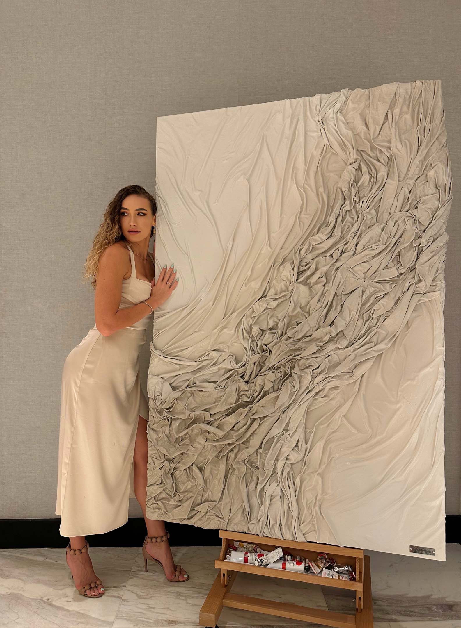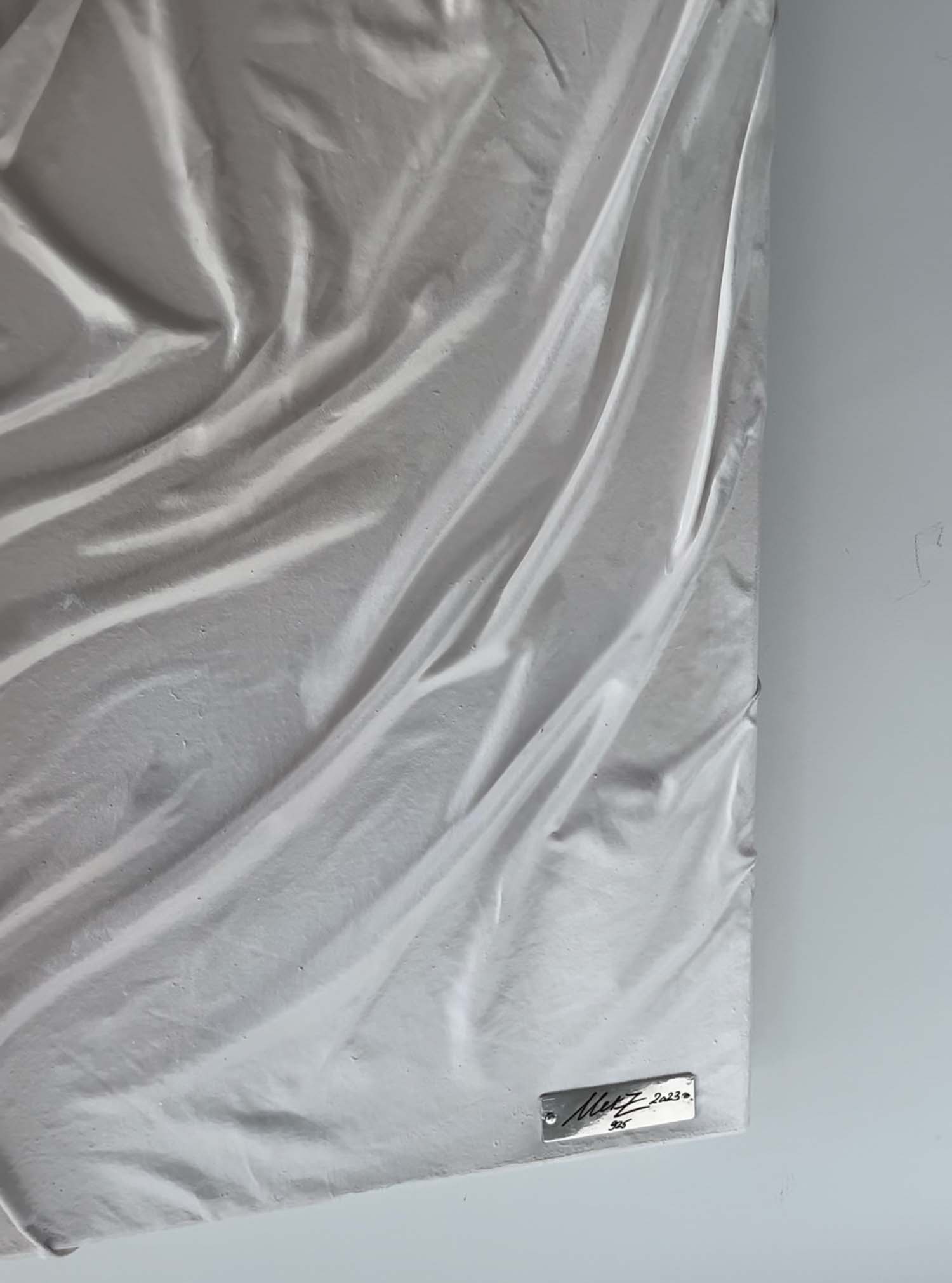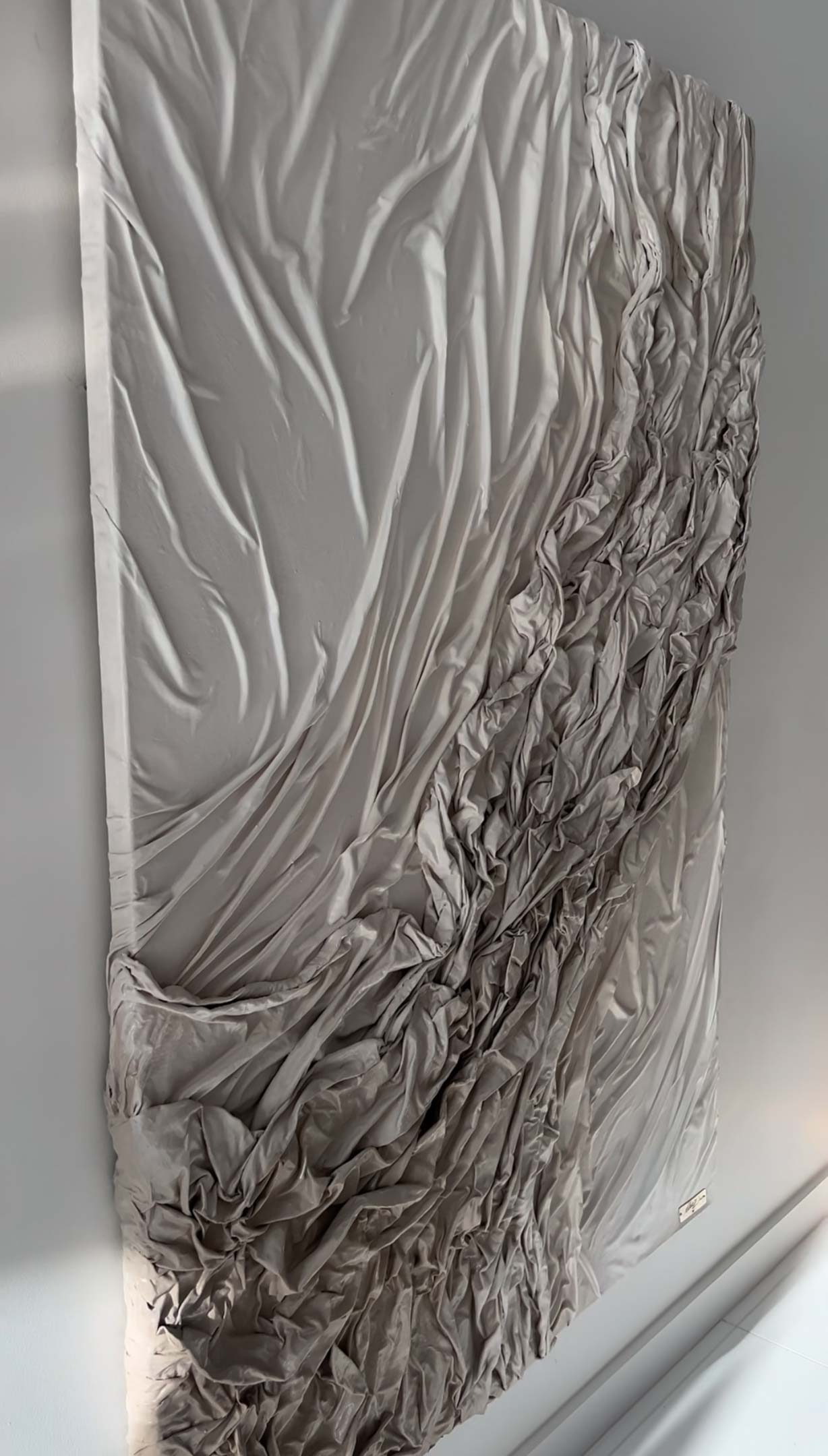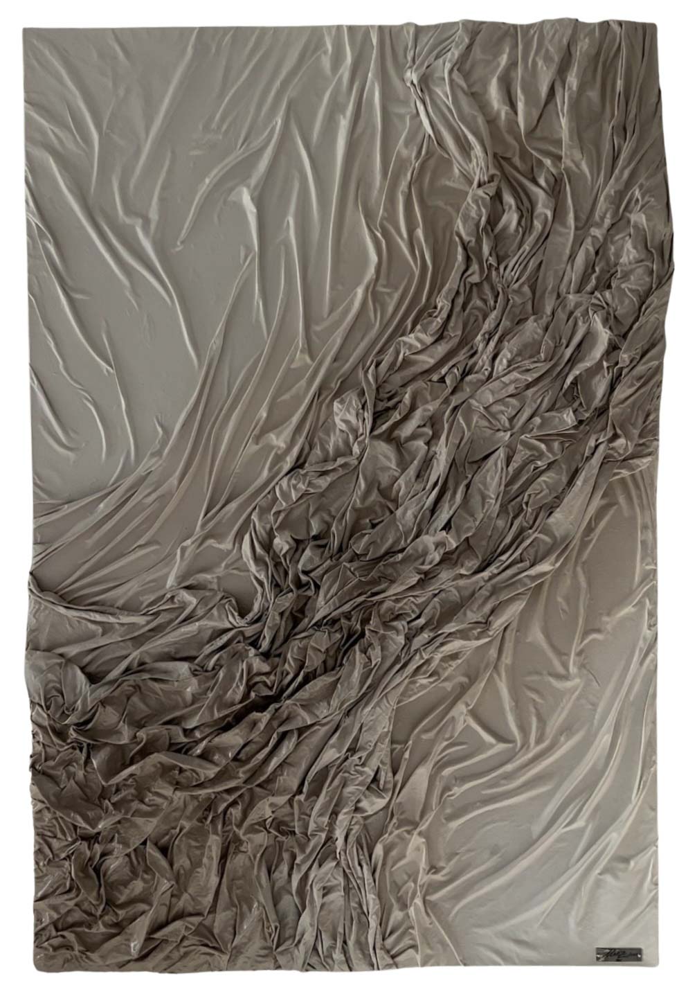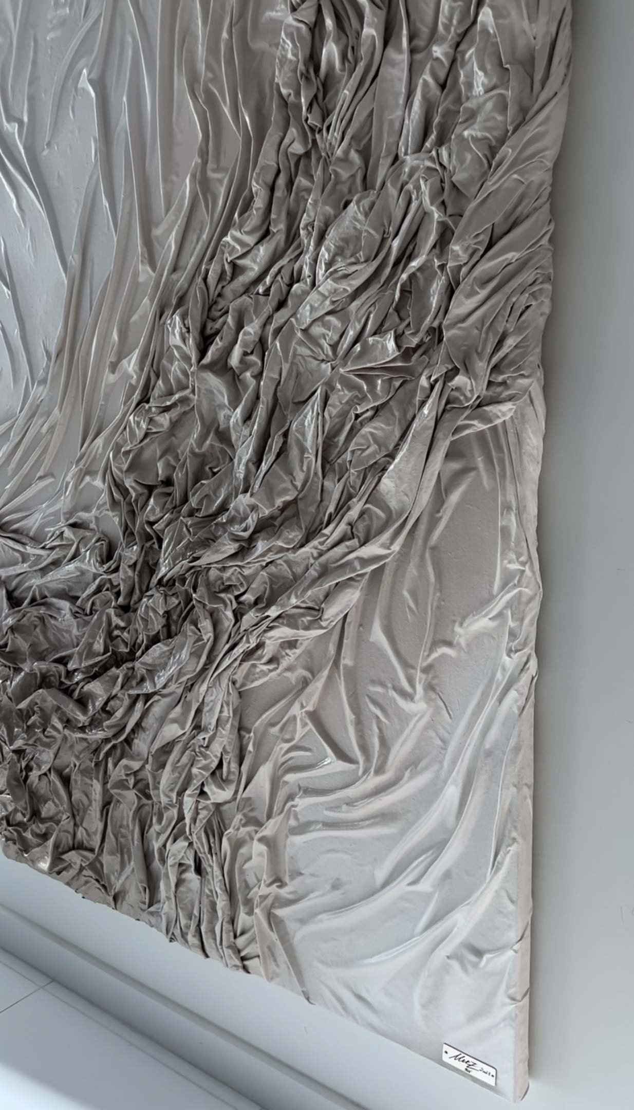 “Truffle” is a tactile exploration of texture and tone, a landscape of folds, shadows, and subtle movement. The sculptural surface evokes the rich, earthy elegance of its namesake, blending the organic with the refined. Layers of taupe, ivory, and deep umber merge into a flowing composition that feels both natural and deliberate, like silk caught in motion or terrain shaped by time.